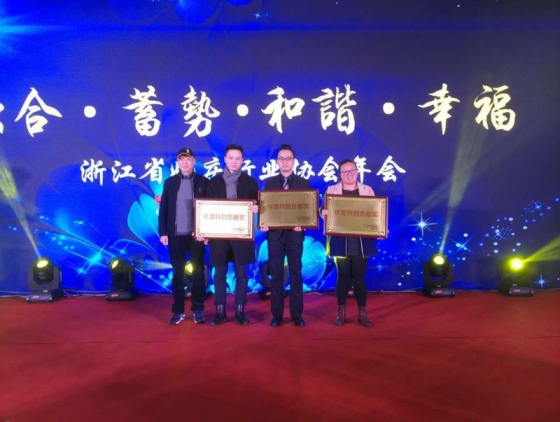 2016年12月27日,浙江省婚庆行业协会新春年会在杭州举行。2016年,嘉兴市婚庆产业商会通过转型升级,在冯月明会长的带领下,在所有会员单位的共同努力下,商会不断发展壮大,此次嘉兴市婚庆产业商会被授予全省“创新示范基地”及“年度特别贡献奖”;冯月明会长获颁“年度突出贡献奖”。婚庆产业商会副会长单位梦想司仪团也获得表彰,被授予全省“婚礼优秀团队”,全国婚礼主持人大赛浙江区冠军—海滔老师再次获封“杰出婚礼主持人”奖!2017年,商会将再接再厉,继续为整个婚庆产业提供更全面的资源整合平台,互惠双赢,抱团发展。嘉兴市